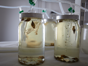Derfor bruger vi i dette projekt den såkaldte stor mosesnegl (Lymnaea stagnalis), som er en velkendt model indenfor neurobiologi og er udbredt i store dele af verden, og derudover de tidlige larvestadier af zebrafisk (Danio rerio). Vi undersøger, hvordan vi kan bruge dem til at teste kemikalier for bl.a. hormonforstyrrende effekter, og vi vil bl.a. undersøge, om udsættelse for kemikalier kan medføre målbare vækst- og adfærdsændringer, og om disse ændringer er følsomme og specifikke nok sammenlignet med de eksisterende tests på vertebrater.